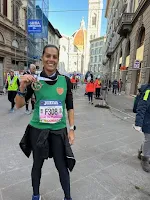 Passato nuovamente parte del fiume Arno ho iniziato a sentire il calore delle persone ai cigli della strada che ci incoraggiavano della fine gara. Vedevo più fotografi concentrati a immortalare quegli ultimi kilometri e li capii che era quasi finita. Siamo "Ripartiti", nel senso che in quel momento (come spesso succede nelle distanze più lunghe) non ho sentito più dolori nè stanchezza ed ho iniziato a correre più veloce. Sapevo che anche se stavo male prima arrivavo al traguardo e prima finivo di correre. Ricordo una curva, dove guardai Andrea e, allo stesso tempo lui guardando me sorrise dicendomi: "Mo è quasi finita davvero" e li mi sentivo contenta, strafelice perché quel momento tanto atteso da ore e "visto" da mesi si stava avverando. "Braviiiiii, dai è finitaaaa!" ci ricordavano i volontari lungo il percorso mentre grandi e bambini applaudivano. io ero sempre più contenta. Non dimenticherò mail il colore della cupola del Duomo che piano piano si faceva strada tra le vie dando uno spettacolo indescrivibile. Più vedevo il Duomo avvicinarsi e più capivo che mancava poco perché il traguardo stava li.